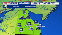 DELMARVA - As high pressure builds in from the Midwest and Great Lakes and an upper-level low drifts eastward over Quebec, the region will experience a sharp temperature drop overnight and continued cool, dry conditions into Friday.