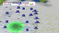 Early next week stays chilly. Monday will be blustery with highs only in the upper 40s to low 50s, feeling more like the 30s under partly cloudy skies. A weak system passes to the south on Tuesday, bringing widespread clouds and a few light showers and highs near 50.