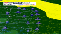 Overnight lows dip into the low 30s, and clouds start increasing late as we head toward Sunday. Sunday, turns mostly cloudy, and highs settle back into the mid to upper, still manageable for mid-February, just not as bright as Saturday.