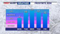 Looking ahead, forecasters say temperatures should moderate closer to seasonal levels midweek, and a warm front could bring a small chance of light wintry precipitation Tuesday into Tuesday night.