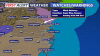 Wind Advisory is in effect late tonight -Sunday for Sussex County, DE, Wicomico, Worcester and Somerset counties in Maryland. Wind gusts inland 35-45 and at the coast up to 50 mph.