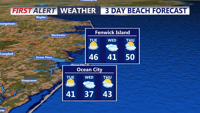 DELMARVA - Sussex County and the beach communities from Lewes and Rehoboth Beach south to Bethany Beach, Fenwick Island and Ocean City, Maryland, are expected to turn much colder and remain windy from early Tuesday morning through early Wednesday morning after a powerful cold front pushes offshore.