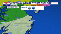 Behind the front, a much cooler and breezy pattern settles in. Temperatures on Monday may hold steady or even fall during the day, while northwest winds could gust between 30 and 40 mph. By Monday night, lows are expected to tumble into the 20s and 30s across the region, and highs on Tuesday will only recover into the mid to upper 40s.