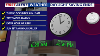 By Saturday night, winds will ease, allowing for the potential of frost in some areas as lows drop into the 30s. Don't forget we set those clocks back an hour Saturday night into Sunday. Extra hour of sleep!