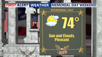 Looking at a mix of sun and clouds with highs in the 70s Memorial Day.