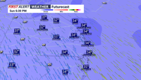 In Sussex county, a light accumulation is expected, with around one to two inches expected, with slightly lower totals at the beaches. Rain could hold down accumulation amounts in some areas. Skies clear overnight with temperatures dipping into the mid 20s.