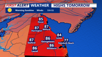 By Tuesday, the closed low will move away, allowing a brief ridge of high pressure to settle over the area. This will result in mostly clear skies and dry conditions for the day. Temperatures will again reach the 80s to near 90 degrees, making for a warm and pleasant day across Delmarva.