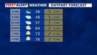 DELMARVAÂ -Â Leave extra time to get to your destination this morning with areas of dense fog. Visibility could be less than a half-mile. After morning fog, temperatures will surge even more, with many inland spots reaching the mid and even upper 70s. It will stay cooler near the coast, where highs should remain in the 50s and 60s.