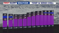 Behind the front, winds strengthened with gusts reaching twenty-five to thirty-five miles per hour at times through early Monday. Temperatures dropped into the mid and upper twenties by daybreak, setting the stage for a frigid start to the workweek.