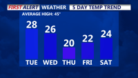 Tuesday will stay well below freezing, with afternoon highs struggling in the teens to near 20 degrees. Wind chills will remain bitter — especially during the morning — and clouds may increase at times.