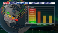 If you missed the Northern Lights Tuesday night, you may get another chance this evening. According to the Space Weather Prediction Center a severe geomagnetic storm (G4 to possibly G5) is expected as coronal mass ejections from the sun reach Earth today. With clear skies forecast over Delmarva, viewing conditions for the Aurora Borealis look favorable after dark.