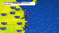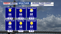 Sunny breezy afternoon along the coast with highs in the mid to upper 60s.