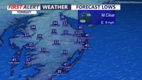 Another cold night, mostly clear skies and lows in the low to mid 30s.