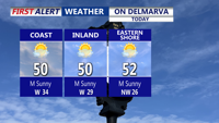 DELMARVA -- A brisk and sunny day is on tap across Delmarva today as strong low pressure pulls away into the Canadian Maritimes. Temperatures will run below normal, with highs only in the upper 40s to low 50s.