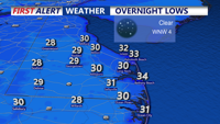 Clear skies and calm winds will allow temperatures to fall into the upper 20s away from the beaches into Tuesday morning.