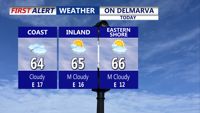 Partly sunny cool Friday with highs in the mid to upper 60s, breezy east winds at the beaches gusting 25 mph.
