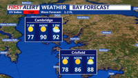 DELMARVA - A weak front is approaching Delmarva, bringing isolated showers and thunderstorms this afternoon. These storms are expected to be limited in strength due to low shear and moderate instability. Heavy downpours are possible in some areas, but overall, severe weather is not anticipated. The primary window for thunderstorms is during the afternoon and early evening.