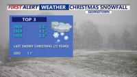 The last time Georgetown had snow for Christmas was 23 years ago, when 1.1 inches fell.