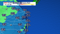 Our next chance for rain comes Thursday night into Friday morning as low pressure passes to our south. We could see some measurable rain out of this system. Models differ on rain amounts. Expect up to a tenth of an inch or so for Delaware, with higher amounts farther south. Thursday night low temperatures will be in the 40s.