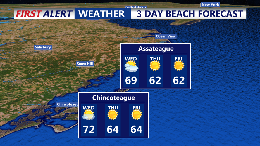 DELMARVA - Sussex County will see improving weather conditions early Wednesday through early Thursday as a cold front sweeps through the region, clearing skies and ushering in cooler, drier air.