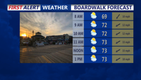 Temperatures will be warmer tonight, with lows ranging from the 50s to the low and mid-60s. Highs on Friday are expected to reach the 70s to near 80 degrees, making for a mild and cloudy end to the workweek on Delmarva.
