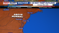 High pressure continues into Monday, keeping conditions dry but cold, with highs again in the 30s to around 40 degrees. The high shifts offshore by Tuesday, allowing temperatures to begin moderating into the 40s. A cold front is expected to cross Delmarva later Wednesday, with highs climbing into the 40s to possibly the low 50s ahead of the front. High pressure returns Thursday, with slightly cooler air and only a very low chance for rain.