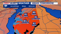 By tomorrow morning, expect clearer skies and drier conditions as the rain shifts southward. Temperatures will be cooler following the cold front's passage, providing a brief respite before Tropical Storm Debby or its remnants approach our region on Friday.