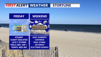 DELMARVA - Sussex County residents can expect an active weather pattern late Friday into Saturday as a cold front slides south across the region. This front, combined with intense heat and humidity Friday afternoon and evening, will spark scattered thunderstorms. Some storms may produce strong winds and heavy downpours before diminishing late Friday night.