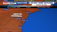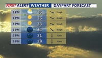 DELMARVA -- Cold and quiet weather is in place across Delmarva today as a weak area of high pressure extends from the Ohio Valley into the region. Mostly sunny skies are expected, with afternoon highs reaching the mid to upper 30s, near 40 on the Eastern Shore. Conditions remain dry into the evening, with mostly clear skies and overnight lows dropping into the low to mid 20s.