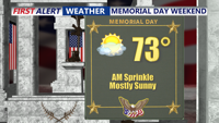 Memorial Day looks to be a mild and enjoyable holiday. With partly to mostly sunny skies and light winds, high temperatures are expected to climb into the low to mid 70s inland, with slightly cooler readings along the coast due to developing sea breezes.