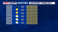 By Friday, a more active weather pattern is expected as a series of quick-moving systems approach the region, bringing increased rain chances Friday night and again on Sunday. Temperatures will remain seasonable through the weekend before turning cooler early next week.