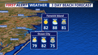 By Tuesday morning, high pressure will begin to reassert itself over Delmarva, bringing more stable and cooler conditions. Morning temperatures will start in the mid-60s under mostly clear skies. As the day progresses, expect abundant sunshine with only a few passing clouds. Afternoon temperatures will rise to the mid-80s, making it a warm but pleasant day with lower humidity levels compared to the previous day.