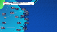 The water will pile up causing coastal flooding on Sunday, with inundation of 1-2 feet in vulnerable spots. If you live in a flood prone area, make sure to make proper preparations. Power outages are possible through Sunday as wind gusts could reach close to 60 mph the coast with 40-50 mph gusts farther inland. Highs in the upper 60s Sunday.