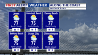 Partly cloudy Mother's Day with highs in the mid to upper 70s at the coast.