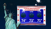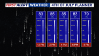 Independence Day appears to be the most comfortable day of the period, with warm sunshine and lower humidity creating pleasant conditions for early Fourth of July celebrations. High temperatures will be in the mid 80s, then 70s with clear skies around fireworks time.