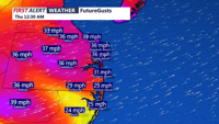 Overnight, winds are forecast to strengthen significantly as the cold front sweeps across the region. A deepening low over the Great Lakes and developing high pressure in the Midwest will tighten the pressure gradient, resulting in gusts reaching 35-40 mph across much of Delmarva. The strongest winds are expected overnight before gradually subsiding Thursday morning.