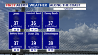 DELMARVA - A powerful cold front is pushing offshore late Monday evening, leaving Sussex County, Delaware, under blustery and sharply colder conditions that will persist through late Tuesday evening.