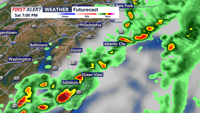 DELMARVA -- A cold front is set to cross Delmarva this afternoon into this evening as low pressure tracks to the north. Scattered showers and downpours will continue across the region, with the threat for isolated severe storms through at least 8 p.m. Saturday. The Storm Prediction Center has placed the entire Delmarva Peninsula under a marginal risk (1 out of 5) for severe weather, with damaging winds being the primary concern.
