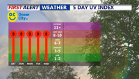 - Evening: Temperatures will remain warm, in the 80s, with continued chances of showers and thunderstorms.