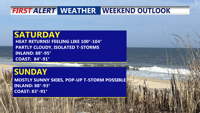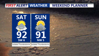 Both days of the weekend highs in the low 90s, with isolated t-storms, everyone won't see rain.