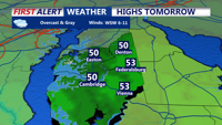 DELMARVA - Clouds will linger across Sussex County late Monday evening as dry conditions prevail, especially along the coast and beach communities. Overnight lows are expected to dip to near freezing inland but remain a bit milder near the beaches, where temperatures may stay just above freezing thanks to onshore influences and southerly flow.