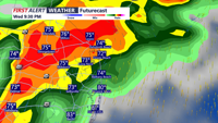 Slight risk ( 2 of 5) for the threat of severe storms. Primary threats: Damaging winds, hail and flash flooding.