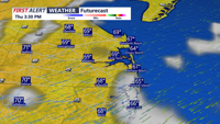 The weekend will bring a milder trend as the high sets up just off the Mid-Atlantic coast. Highs on Saturday are expected in the mid to upper 70s. From Sunday through Tuesday, temperatures will climb further, reaching the upper 70s to low 80s. Nighttime lows will range from the low 50s over the weekend to the upper 50s and low 60s early next week.