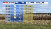 Behind the front, skies will clear rapidly Wednesday afternoon as cooler and drier air arrives. Northwest winds may gust up to 30 mph, with temperatures falling into the mid-60s to low 70s during the day.