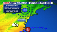 Some of the coolest air we have seen so far this fall rolls in late week, possible patchy frost Friday morning.