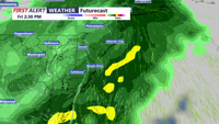 Friday is shaping up to be the soggiest day of the week as low pressure settles over the Mid-Atlantic and supports low pressure near the New Jersey coast. Showers and embedded thunderstorms are likely throughout the day. Abundant clouds and rain cooled air will suppress temperatures, with highs only reaching the 60s. Rain will taper off Friday night as the low exits, with lows falling into the 40s, with some 50s at the coast.