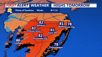 Wednesday: High pressure will be centered near Delmarva early in the day before shifting offshore, causing winds to turn light westerly. Expect a partly to mostly sunny day with highs mainly in the low to mid-80s, marking the beginning of a warming trend. Humidity levels will remain comfortable, with dew points still in the 50s.