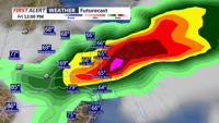 Saturday poses a greater risk for stronger storms. A more vigorous system will move in from the Great Lakes, sending a cold front toward the region by late in the day. Ahead of the front, temperatures will again climb into the 80s under humid conditions. Increasing instability — with values around 1000 J/kg — combined with stronger upper-level winds, will support the development of more organized showers and thunderstorms in the afternoon and evening.