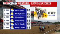 Headed to Pimlico, looking partly cloudy warm and muggy with highs in the upper 80s.