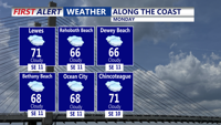 From Thursday into Friday, an amplifying upper-level trough will drive cooler air into the region. Temperatures are expected to dip into the 60s and low 70s, with slightly cooler readings along the coast. A few instability-driven showers may pop up Friday, though chances remain low at around 20 percent.